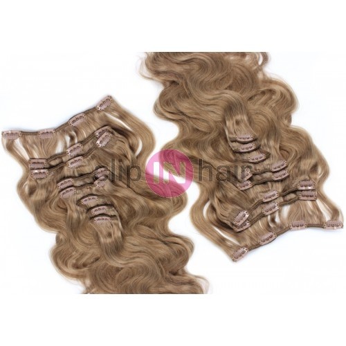 Clip in vlnitá maxi sada k prodloužení a zahuštění vlasů v pohodlí domova. 53 centimetrů dlouhé vlasy v celkové hustotě 200 gramů.