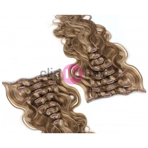 Clip in vlnitá maxi sada k prodloužení a zahuštění vlasů v pohodlí domova. 53 centimetrů dlouhé vlasy v celkové hustotě 200 gramů.