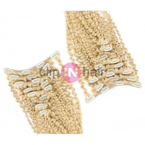 Clip in kudrnatá maxi sada k prodloužení a zahuštění vlasů v pohodlí domova. 53 centimetrů dlouhé vlasy v celkové hustotě 200 gramů.