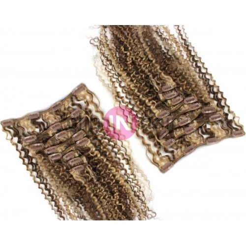 Clip in kudrnatá maxi sada k prodloužení a zahuštění vlasů v pohodlí domova. 53 centimetrů dlouhé vlasy v celkové hustotě 200 gramů.