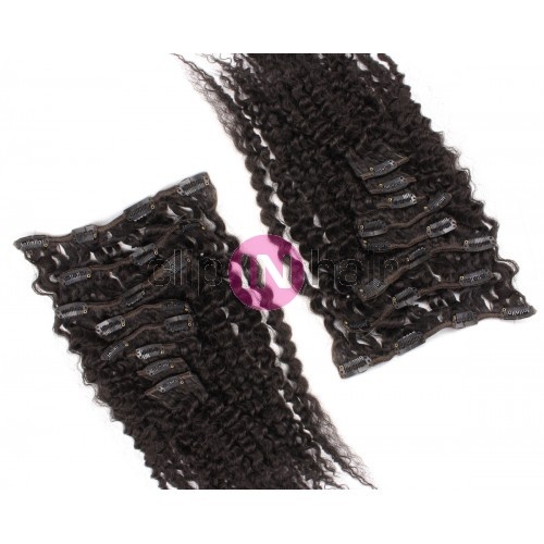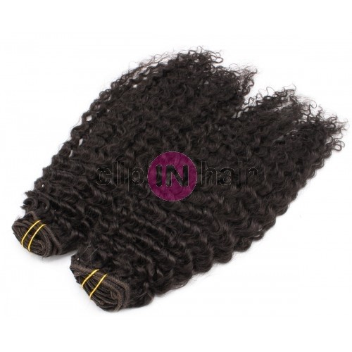 Kudrnatý clip in maxi set 53cm pravé lidské vlasy – REMY 200g - PŘÍRODNÍ ČERNÁ