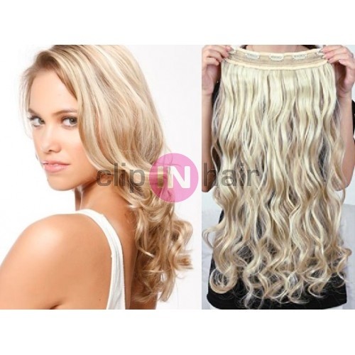 Clip in REMY vlasový pás 63cm vlnitý – platina / světle hnědá
