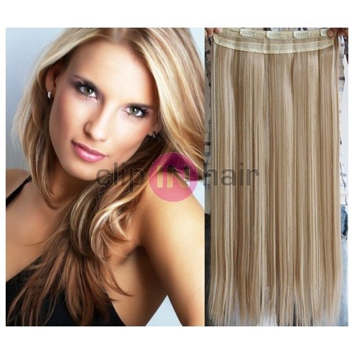 Clip in pás japonský kanekalon 63cm rovný – platina / světle hnědá