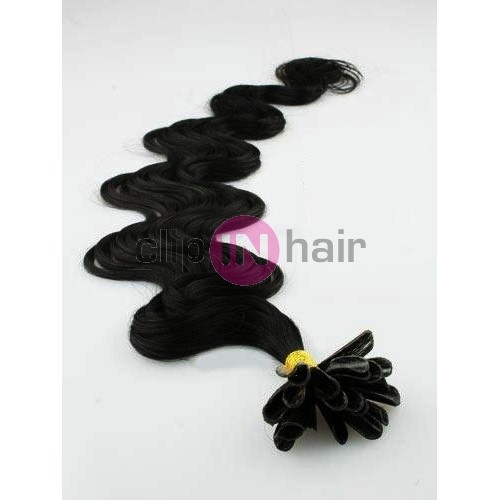 Vlasy evropského typu k prodlužování keratinem 60cm vlnité - černé