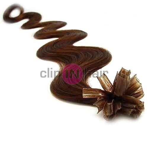 Vlasy evropského typu k prodlužování keratinem 60cm vlnité - středně hnědé