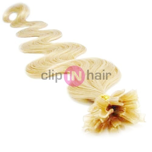 Vlasy evropského typu k prodlužování keratinem 60cm vlnité - nejsvětlejší blond