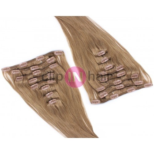 Clip in maxi set 53cm pravé lidské vlasy – REMY 200g – SVĚTLE HNĚDÁ