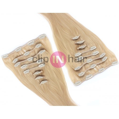 Clip in maxi set 53cm pravé lidské vlasy – REMY 200g – PŘÍRODNÍ BLOND